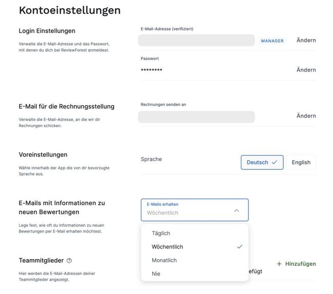 - Suche den Bereich “E-Mails mit Informationen zu neuen Bewertungen”
