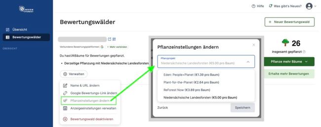 Bitte beachte, dass das deutsche Pflanzprojekt für Kunden mit Standard-, Premium- oder Professional-Tarif verfügbar ist.