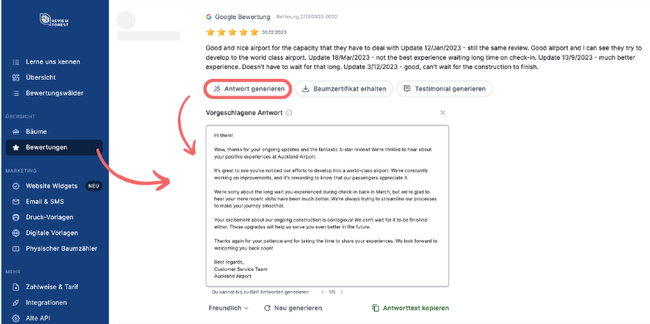 Unsere KI hat einen Intelligenzschub bekommen! Wir haben die Qualität der KI-generierten Bewertungsantworten deutlich verbessert. Egal ob du auf Kundenfeedback oder Mitarbeiterbewertungen antwortest, erwarte relevantere und sinnvollere automatisierte Antworten.