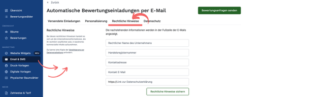 Wir wissen, dass eine Größe nicht für alle passt, besonders für kleine Unternehmen. Deshalb haben wir alle Felder im rechtlichen Hinweis für E-Mail-Bewertungseinladungen optional gemacht. Du hast eine Handelsregisternummer? Super! Du hast keine? Kein Problem – du kannst trotzdem Einladungen versenden!