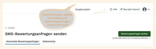 11. Nachdem du die Nummer(n) eingegeben hast, schickst du die SMS, indem du auf “Bewertungsanfragen senden” klickst