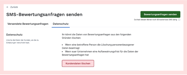 Wir bieten euch die Möglichkeit, die Daten eurer Kunden, an die ihr Bewertungsanfragen verschickt habt, zu löschen.