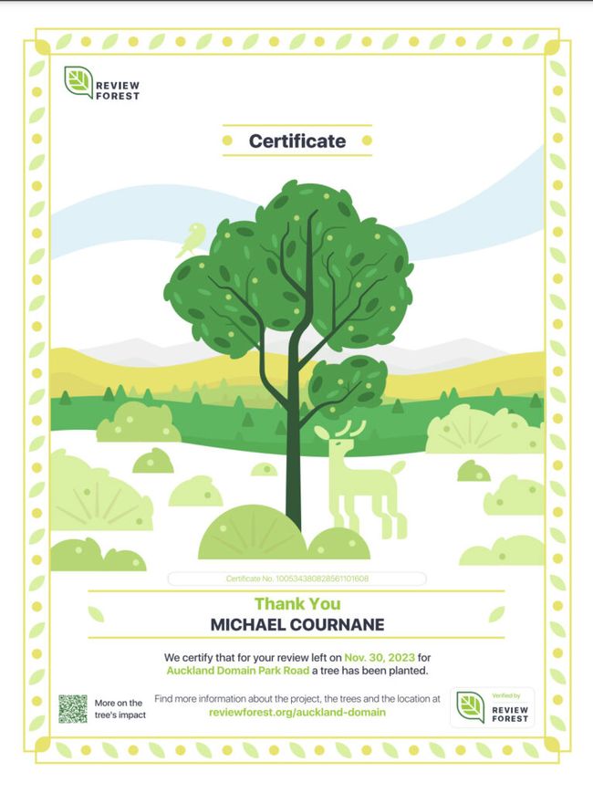 For every review received, your company plants a tree, and the certificate given to the reviewer is evidence of this commitment.