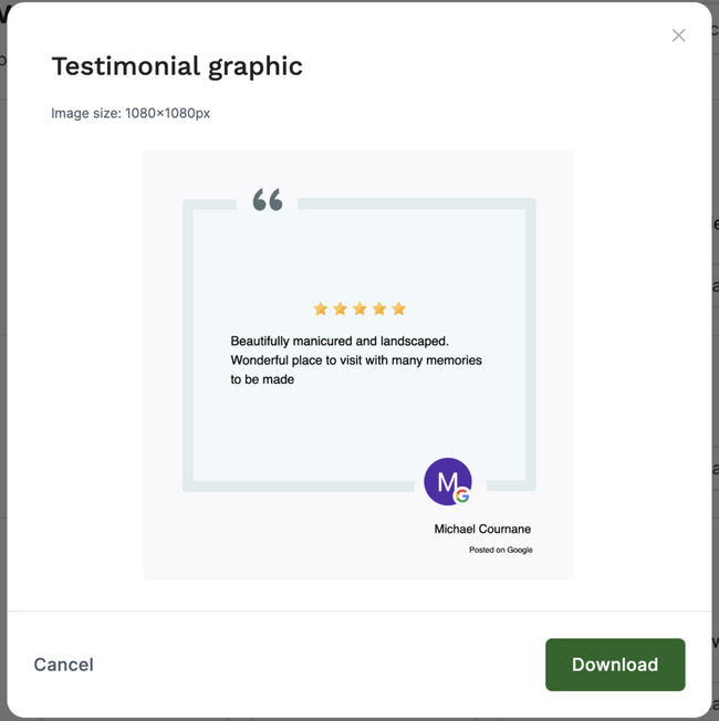 The ‘Generate Testimonial’ feature turns positive reviews into appealing graphics suitable for distribution on social media and websites.