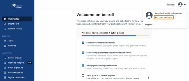 Navigate to the top right corner of the ReviewForest WebApp you find the dropdown when clicking on your account icon.