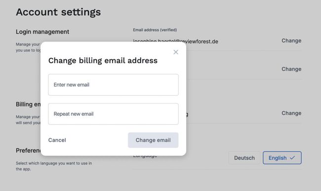 Your account email, with which you login to your ReviewForest account is now changed and will be used during your next login. Make sure you verify the confirmation email we send to your login email address to receive the latest updates from us.