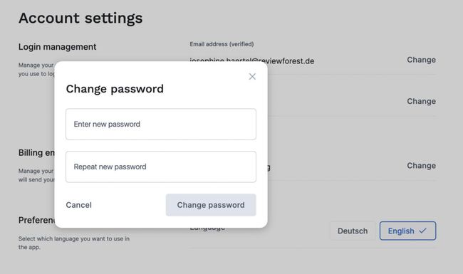 Another advantage of this language change option is that the display of your marketing templates with which you ask for reviews or inform about planting trees for reviews will also be shown in the chosen language. This allows you to adjust and use the templates in the language your customers speak.
