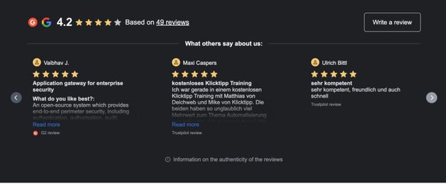 - Carousel Widget: Displays your G2 reviews in an elegant slider – perfect for presenting authentic customer voices directly on your website
