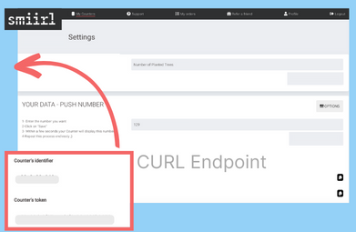 2. In your Smiirl account, under “Settings”, “Your Data – Push Number”, “Curl Endpoint” are the two pieces of data you will need to add to your ReviewForest account.