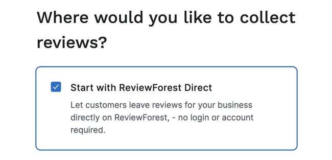 You can sign up and choose ReviewForest Direct as the place you want to collect reviews on. Of course you can always choose to collect reviews on an additional platform too!