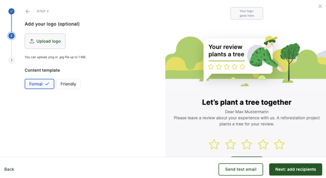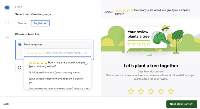With review invitations via email, you can include all the information about your businesses commitment in fighting climate change and motivate your customers to actually leave a review.