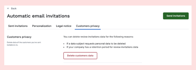 We offer you the possibility to delete the data of your customers to whom you have sent review invitations.