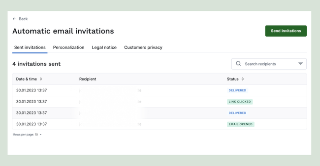 Your overview of already sent emails gives you information about the status of the sent email review invitation, so that you always have everything in view and can react if needed.