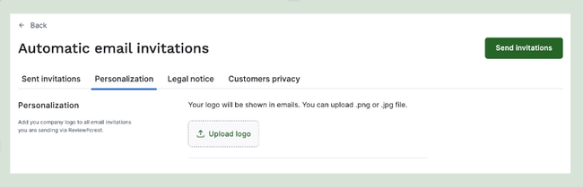 In addition you can include your company logo! Simply go to “Personalization”, upload your logo and your company logo will be included in any email you will send.