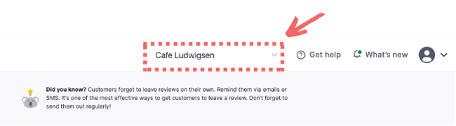 3. First set the business location or product you want to ask for reviews for in the top right menu.